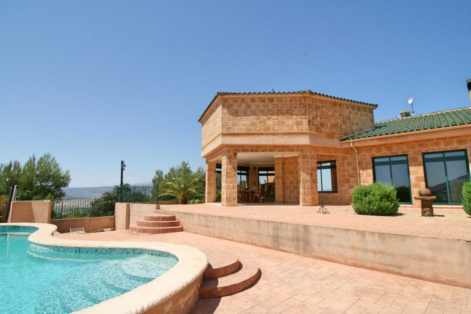 It is located near the village of Biar, about 10 km from Villena and 15 km from Castalla. The house has a very large living room surrounded by a large adjoining conservatory that opens onto a large terrace by the pool.